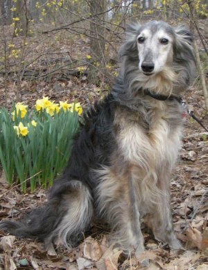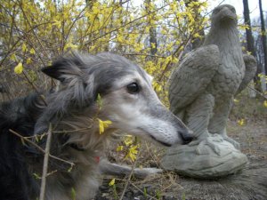 This post is about Dart. Dart is a Silken Windhound, a newly developed breed, a mix of Borzoi with Whippet, to make a smallish or medium sized sighthound with long silky hair (longer than a whippet’s, anyway).