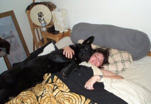 Shunka…was…different…from Dart. Our relationship was very different. I had a seizure of my own, way back, in 2001? 2002? I was at the computer, and no one was here except Rhiannon, and she was 7 at the time. Shunka was the one to realize something was wrong with me, and he went and got Rhiannon. Shunka kept licking me, biting me on the arms, anything he could do to try to arouse me.