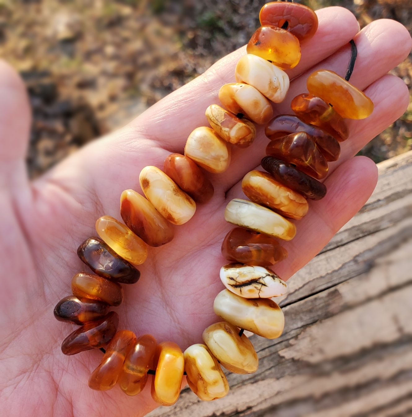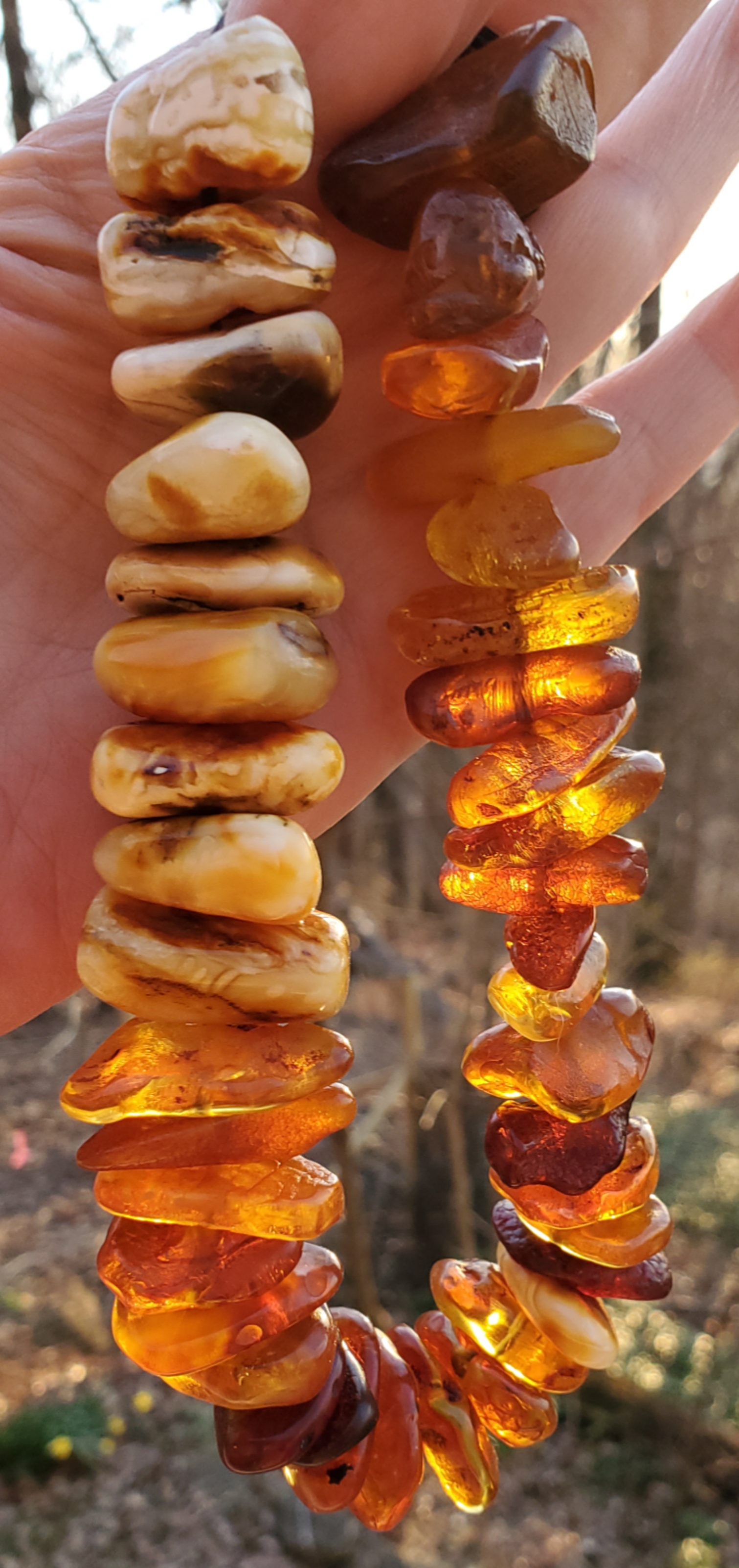 The amber is beautiful. I have some, too, and it is very special. There is a warmth to it when cradled in a hand.