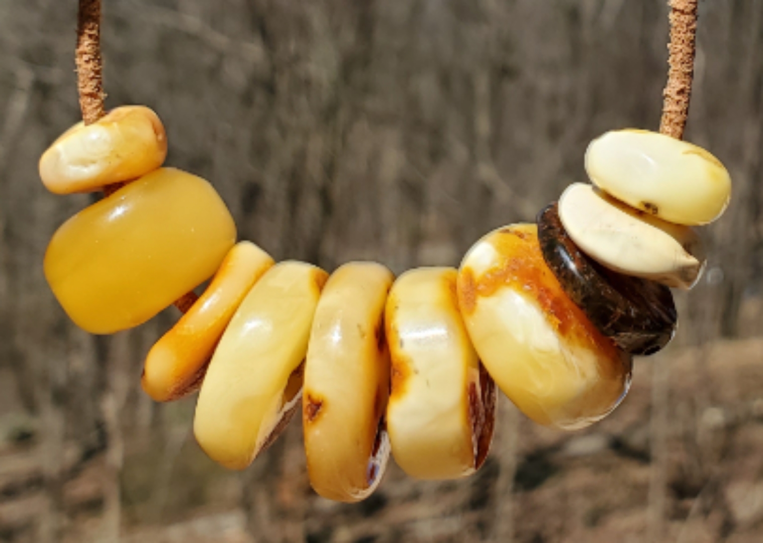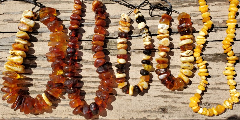 The old woman lay on her bed of sheepskins in front of her hearth, a strand of amber beads cradled in her hand, others laying in front of her. She fingered the beads, one by one, slowly, lovingly. They were of all colors, from a deep, rich, cognac, through the many shades of honey, a yellow like captured sunshine, and a few treasured beads of white streaked with butterscotch or speckled with gray-green, the remains of moss that lived so long ago that people didn’t exist.