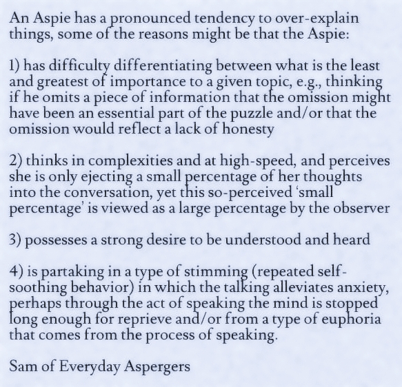 Do not think that because I’ve known I’m an Aspie for a whopping 8 years that I’m able to behave in the way an NT does, or that I can now understand NTs. It doesn’t work like that.